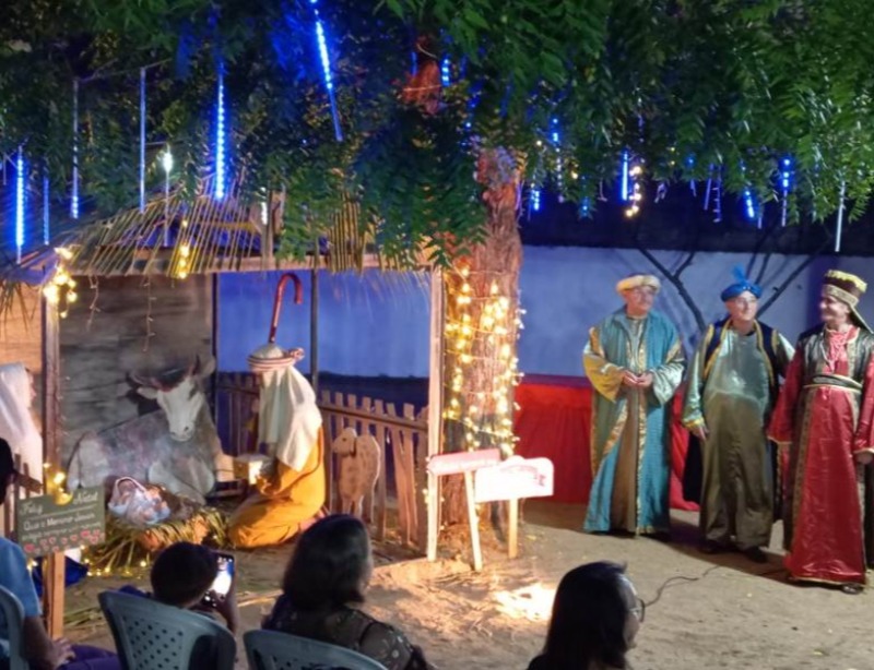 Ocorreu a belíssima apresentação do Coral Natalino e a encenação do Nascimento de Jesus Cristo executadas pelos usuários do SCFV. Idosos também leram poemas.