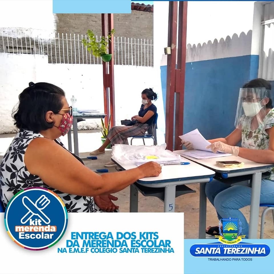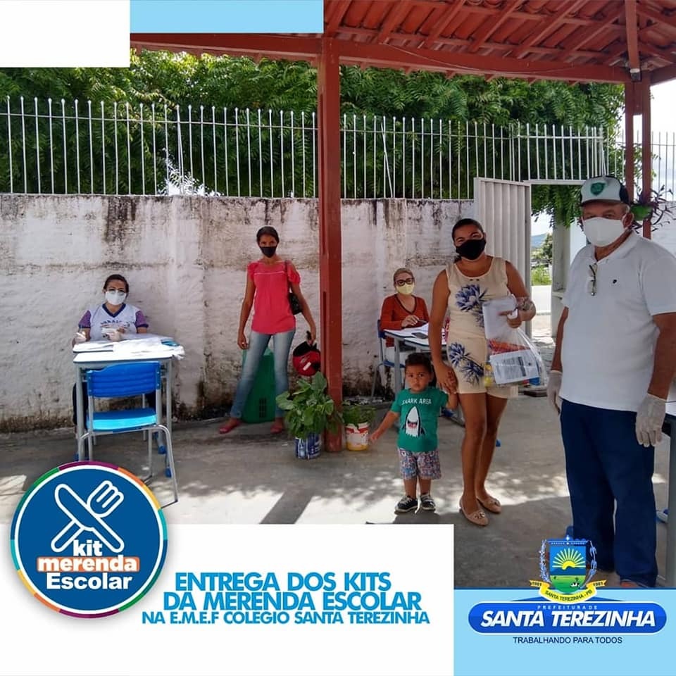 A Prefeitura de Santa Terezinha juntamente com a Secretaria Municipal de Educação realiza a entrega dos kit da merenda escolar aos alunos da rede Municipal de ensino na escola E.M.E.F Colégio Santa Terezinha.Cada escola está entregando o kit alimentação aos responsáveis pelos alunos, respeitando as normas para evitar aglomerações. É importante destacar que a merenda sempre foi prioridade na rede municipal de ensino. O objetivo é garantir um complemento para a alimentação dos alunos, uma vez que diante da pandemia da COVID-19.