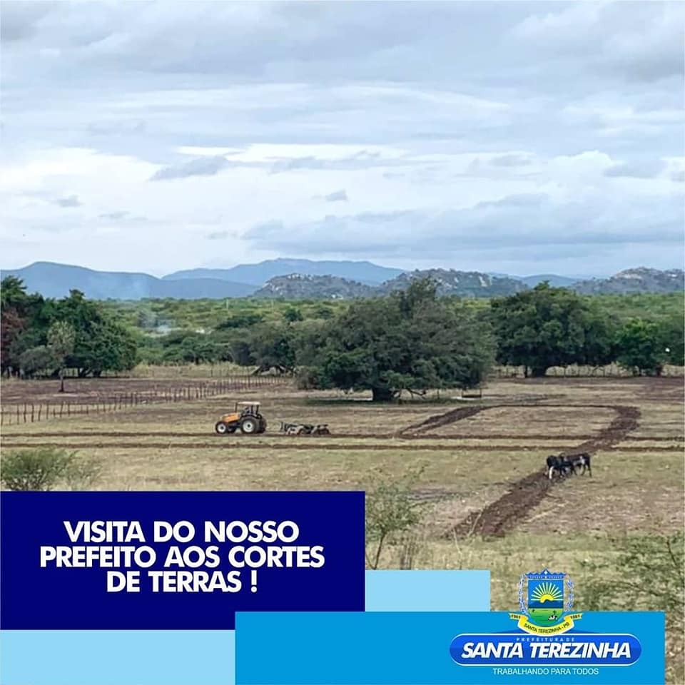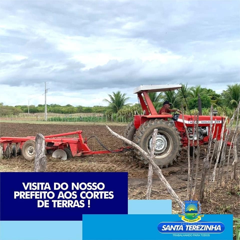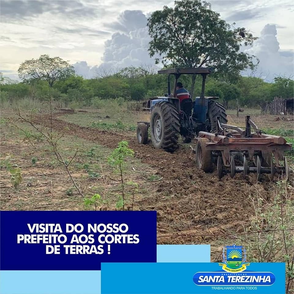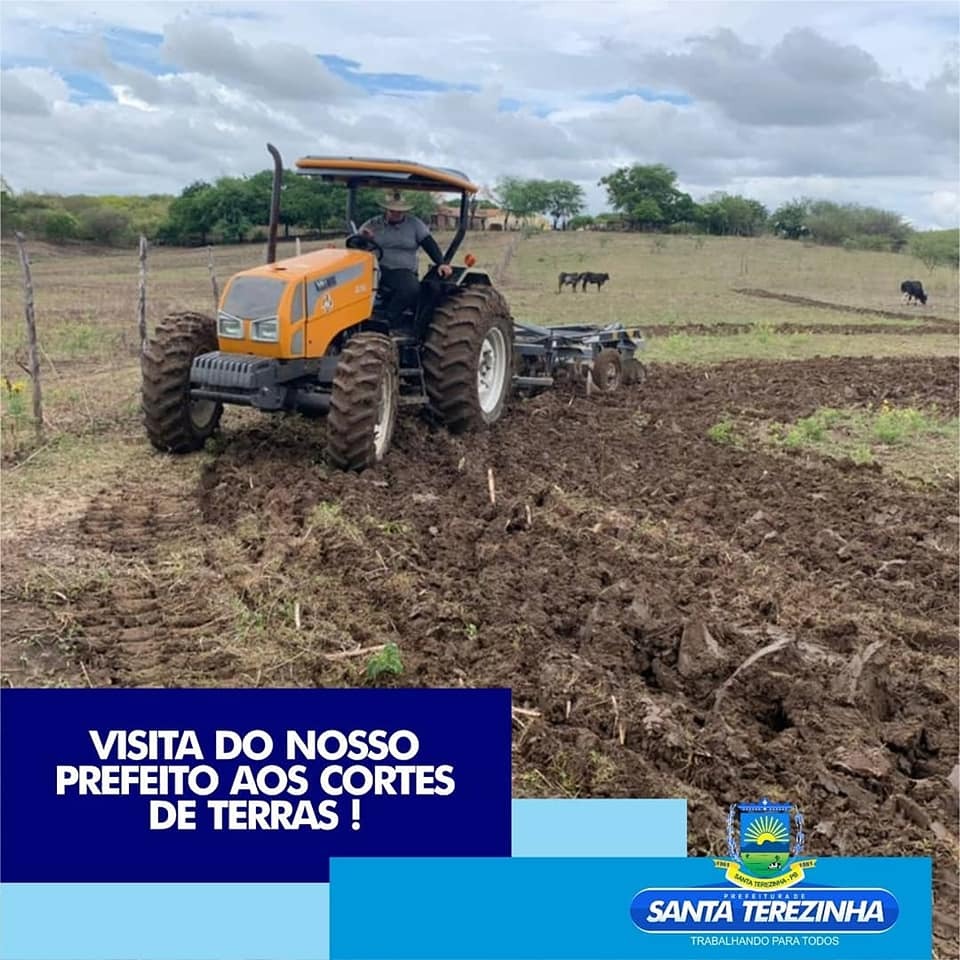 A prefeitura de Santa Terezinha através da secretaria agricultura que deu inicio aos cortes de terras nesta semana, com a visita do prefeito e vice-prefeita comunica a todos os agricultores cadastrados, que suas terras serão aradas o mais rápido possível. Disponibilizando de oito tratores para dar assistência ao homem do campo e aproveitar as primeiras chuvas. « Voltar