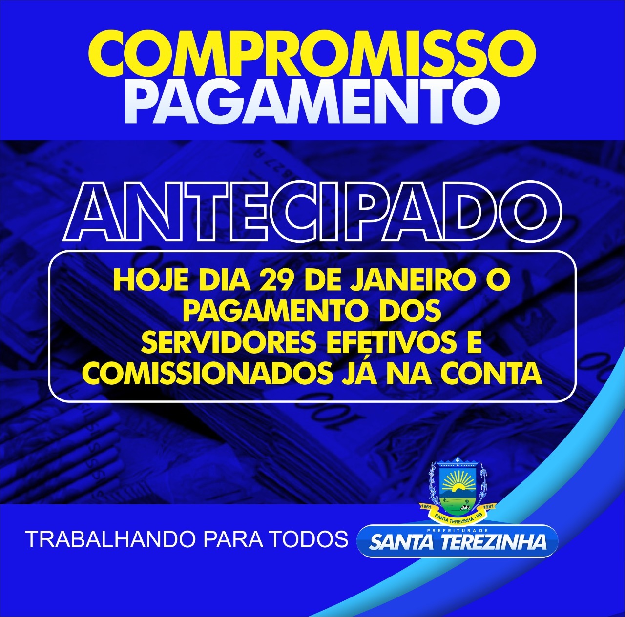 Prefeitura de Santa Terezinha concede hoje 29 de janeiro, o pagamento antecipado dos servidores efetivos e comissionados.