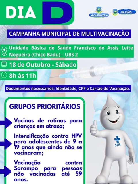 Vacinas de rotinas para crianças em atraso; Intensificação contra HPV para adolescentes de 9 a 19 anos que ainda não se vacinaram; Vacinação contra Sarampo para pessoas não vacinadas até 59 anos.