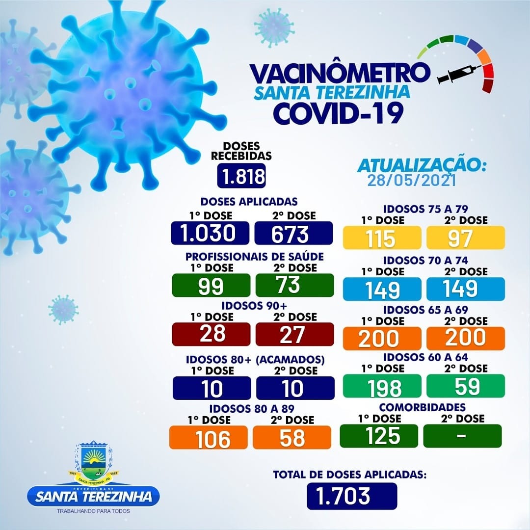 Vacinômetro Santa Terezinha-Pb Covid-19. Sua atualização 28 de Maio de 2021.